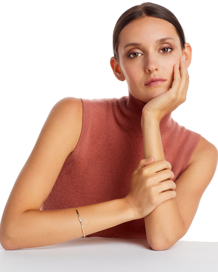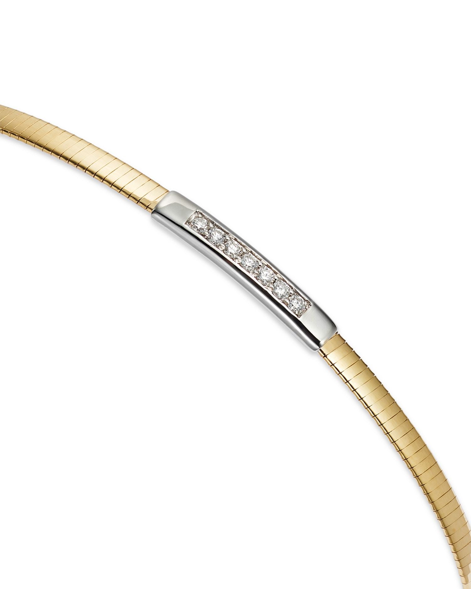 This 14K Yellow Gold Diamond Omega Link Bracelet by Alberto Amati combines the sleek sophistication of Omega links with the sparkle of diamonds. A chic and refined piece to elevate your style.