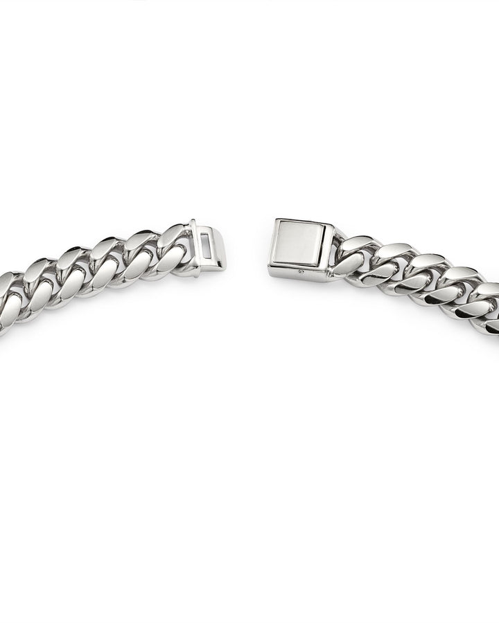 This Sterling Silver Cuban Chain Necklace by Alberto Amati is bold yet classic, featuring a substantial design with a wide, high-polished finish. Perfect for adding a touch of Italian craftsmanship to your look.