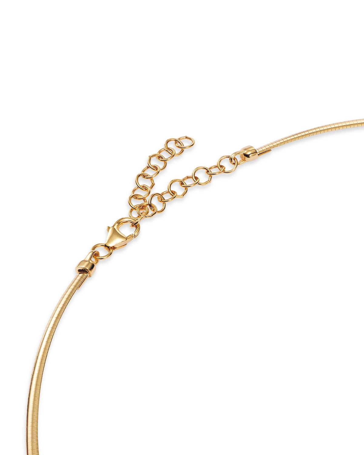 This 14K Yellow Gold Diamond Omega Link Collar Necklace by Alberto Amati combines sleek, modern design with a graceful diamond-accented row for a luxurious touch. Adjustable for versatile wear, it exudes timeless sophistication.