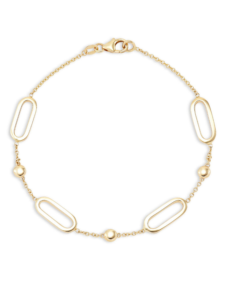 This 14K Yellow Gold Oval Link & Bead Bracelet by Alberto Amati features polished oval links alternating with delicate gold beads, offering a refined balance of texture and shine. A versatile piece for casual and formal looks alike.