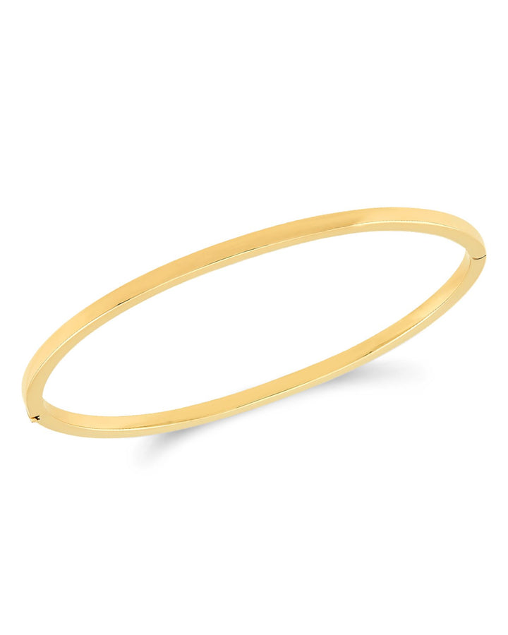 Handcrafted in 14K yellow gold, measuring 7' in length. Features a hinge closure for secure and comfortable wear. Made in Italy.