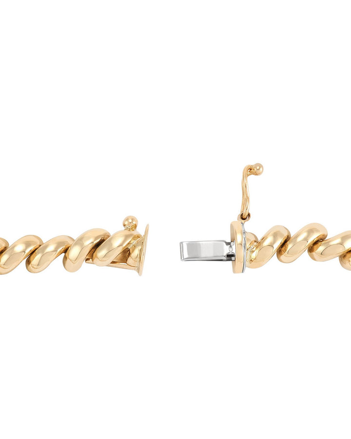 This 14K Yellow Gold San Marco Link Collar Necklace by Alberto Amati showcases the timeless elegance of the San Marco link design. With its luxurious construction and bold aesthetic, this necklace makes a sophisticated statement.
