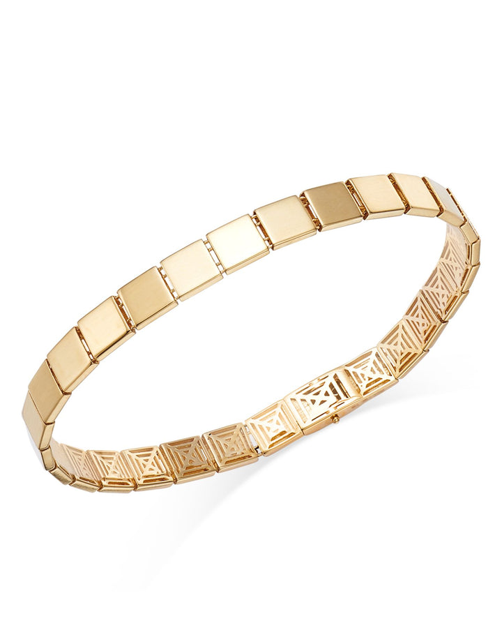 This 14K Yellow Gold Etched Square Link Bracelet by Alberto Amati is a versatile piece with intricate etched details. Whether layered or worn solo, it brings a unique style to any jewelry collection.