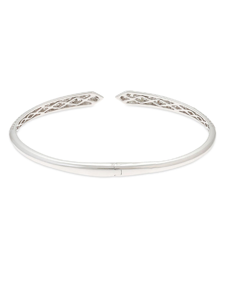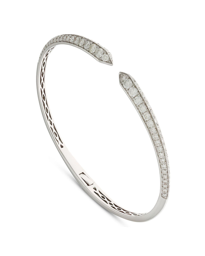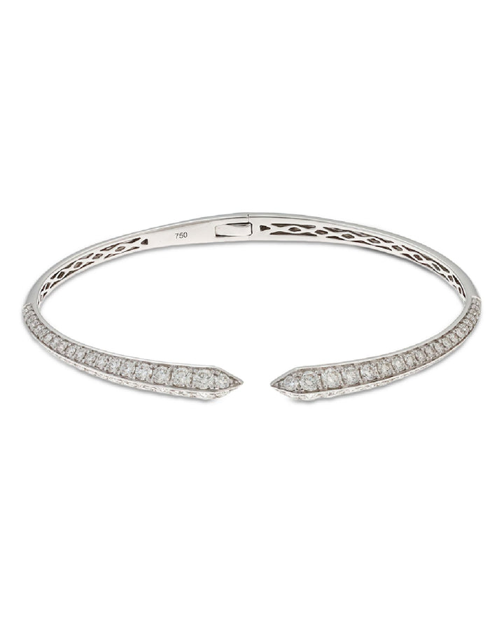 Handcrafted in 18K white gold with 2.34 carats of diamonds (H color, VS/SI clarity). Measures 2.2' in diameter with a hinge closure. White gold is surface-coated with rhodium to enhance shine and may require replating. All gemstones are treated to enhance beauty. All carat weights are approximate, with a variance of 0.05 ct.