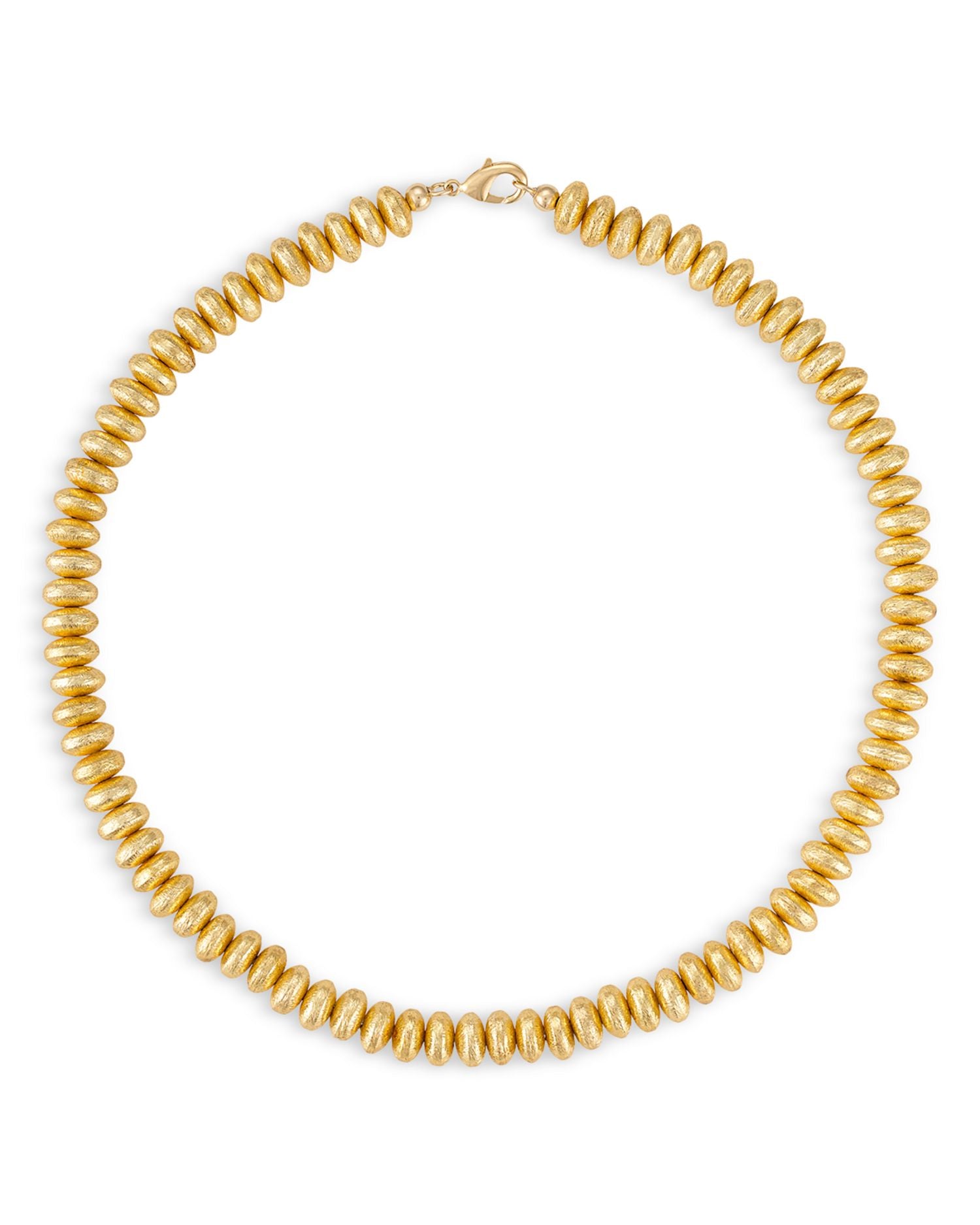 Rondelle 14K Yellow Gold Plate Brushed Bead Collar Necklace, 15"