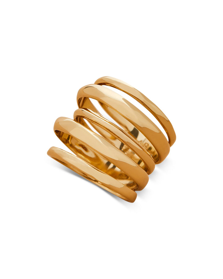 The Layered Ring by Alexis Bittar features a modern design with a sleek, polished finish. Its bold construction makes it a statement piece for any occasion.