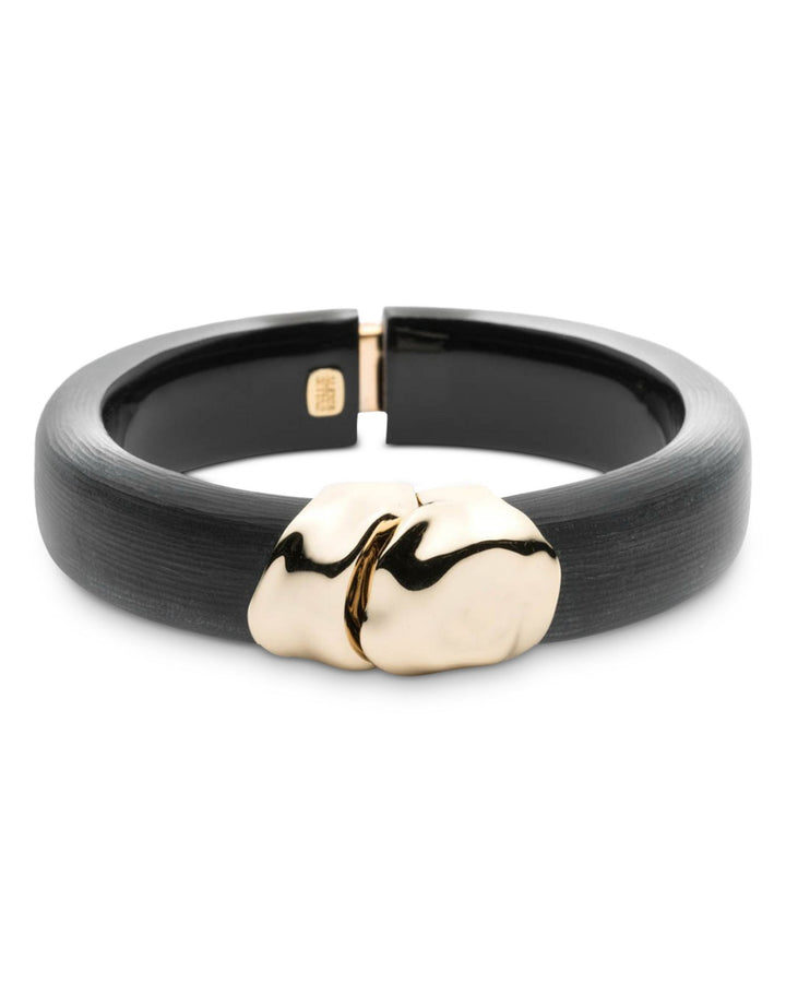 These Molten Hinge Bracelets by Alexis Bittar bring a sculptural elegance to your wrist. The fluid, molten-like design exudes a modern sophistication, enhanced by the luxurious 14K gold plating. The hinge closure ensures a secure fit, making this piece both stylish and functional.
