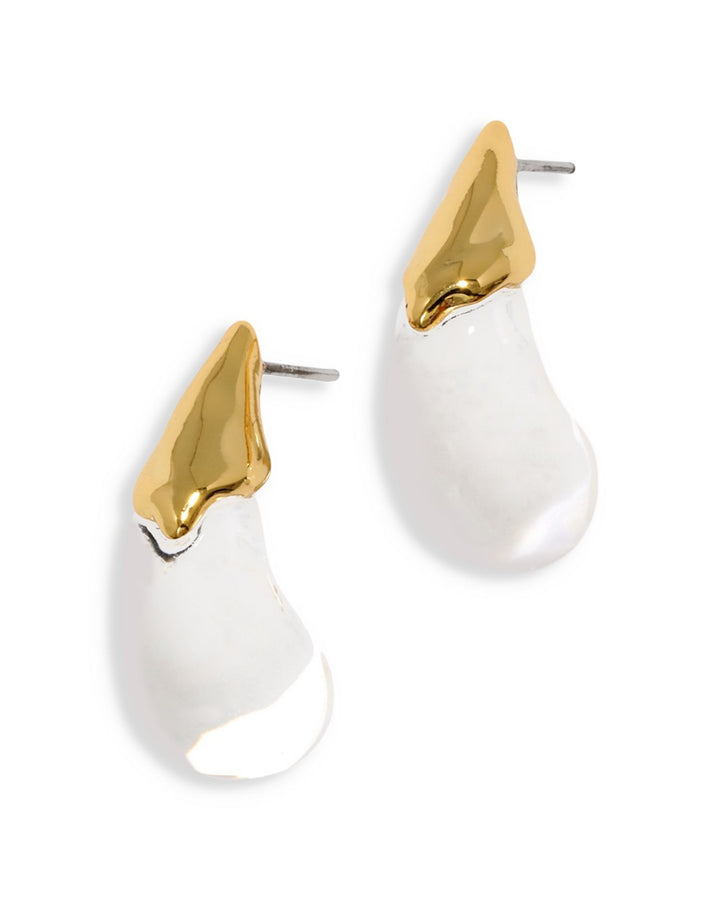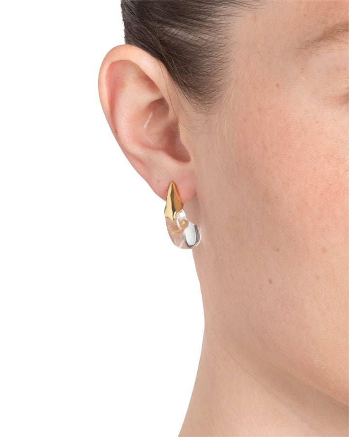 Made from 14K gold-plated metal with lucite. Earrings measure 1'L and are secured with a post-back closure.