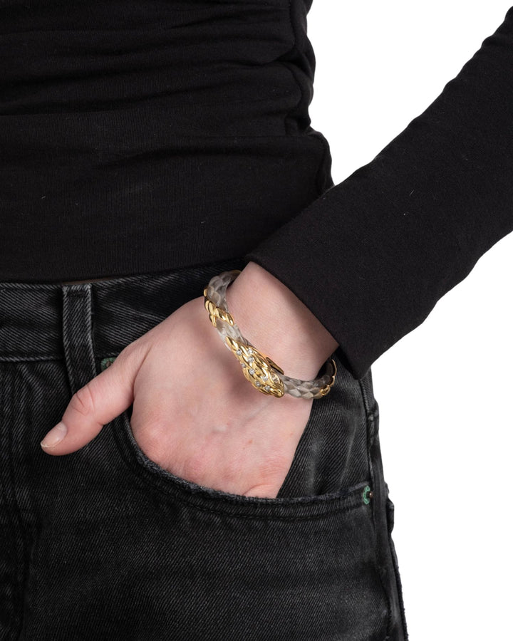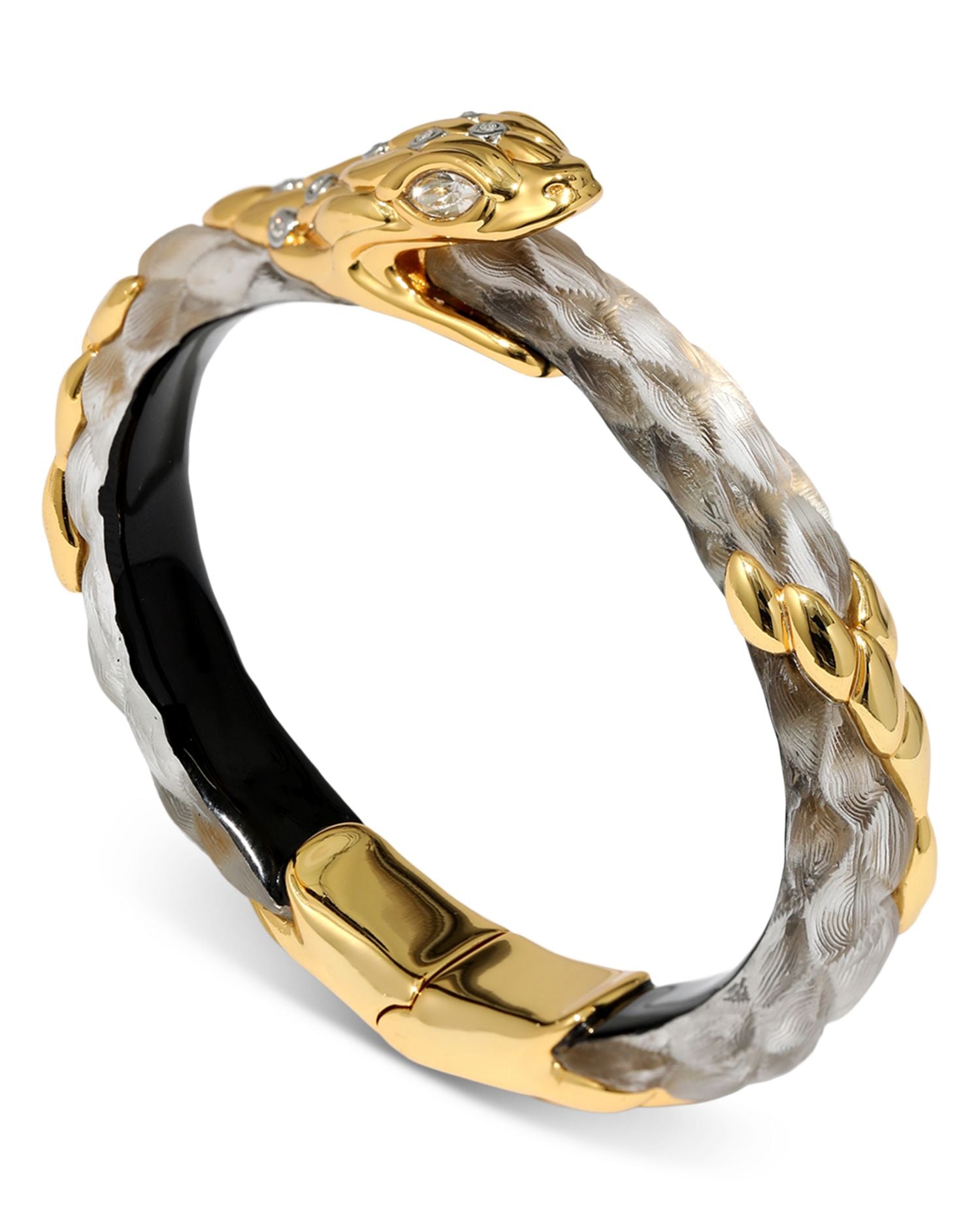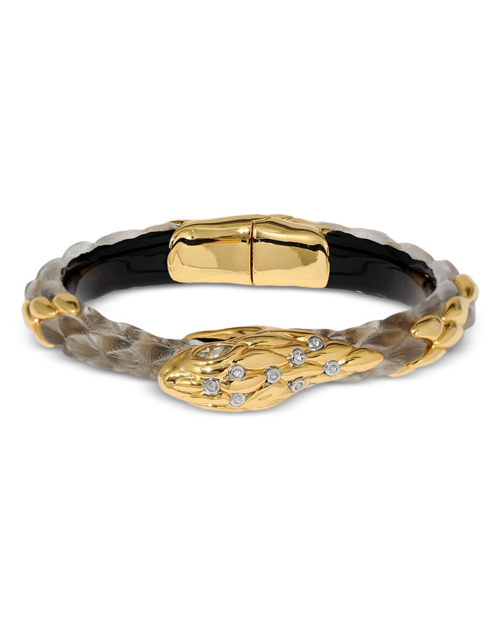 Serpent Pavé & Lucite Snake Bangle Bracelet in 14K Gold Plated