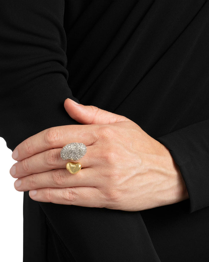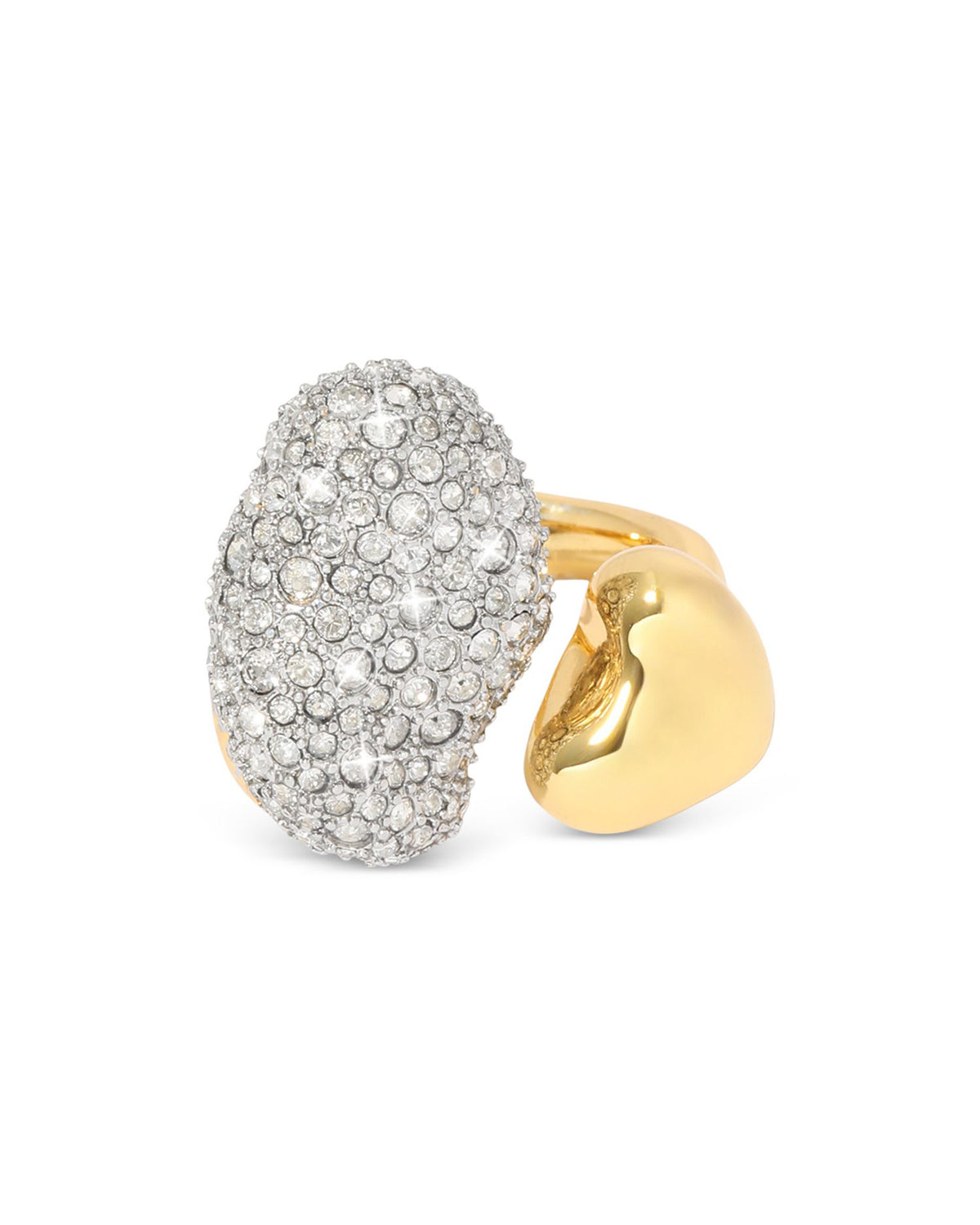 This Solanales Crystal Pebble Ring by Alexis Bittar showcases an organic, pebble-inspired design accented with shimmering crystals. The gold-plated finish adds warmth, making it a refined statement piece for any jewelry collection.