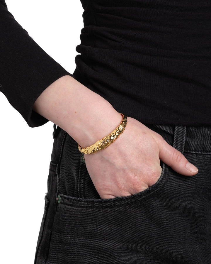 Brut Pavé Sculptural Cuff Bracelet in 14K Gold Plated