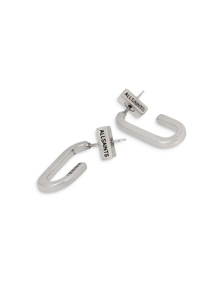 These Oval Hoop Earrings by ALLSAINTS feature a sleek, minimalist silhouette. The rhodium-plated finish ensures a refined look, perfect for adding subtle elegance to your everyday wardrobe.