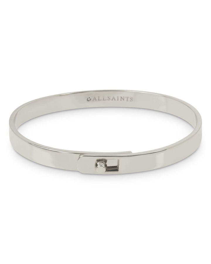 This Punk Stud Bangle Bracelet by ALLSAINTS combines edgy stud detailing with a polished rhodium-plated finish. Its bold design adds a contemporary touch to any outfit.