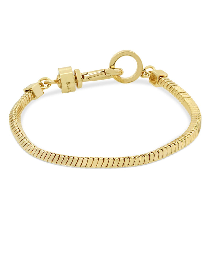 This Snake Chain Flex Bracelet by ALLSAINTS offers a sleek, minimalist design in a polished gold-tone finish. Its flexible construction ensures comfort and versatility, making it a staple for layering or solo wear.