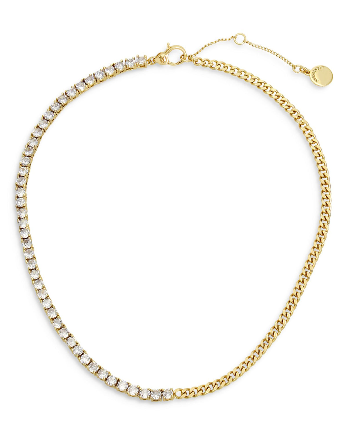 Made from gold-tone brass with glass crystals. Necklace measures 14' with a 2' extension and features a lobster clasp closure.