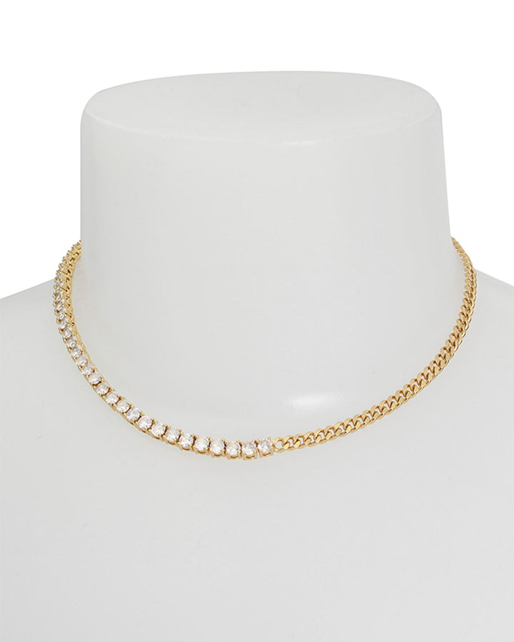 This Stone Chain Collar Necklace by ALLSAINTS features a polished gold-tone chain accented with sparkling glass crystals. Its collar-length design with an extender makes it a chic accessory for both casual and formal looks.