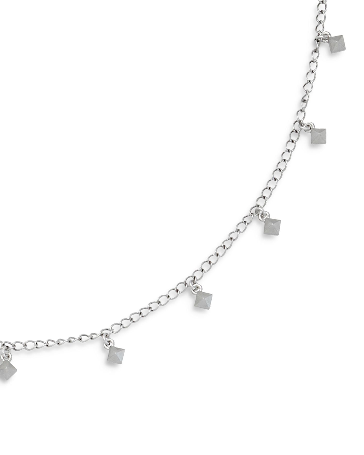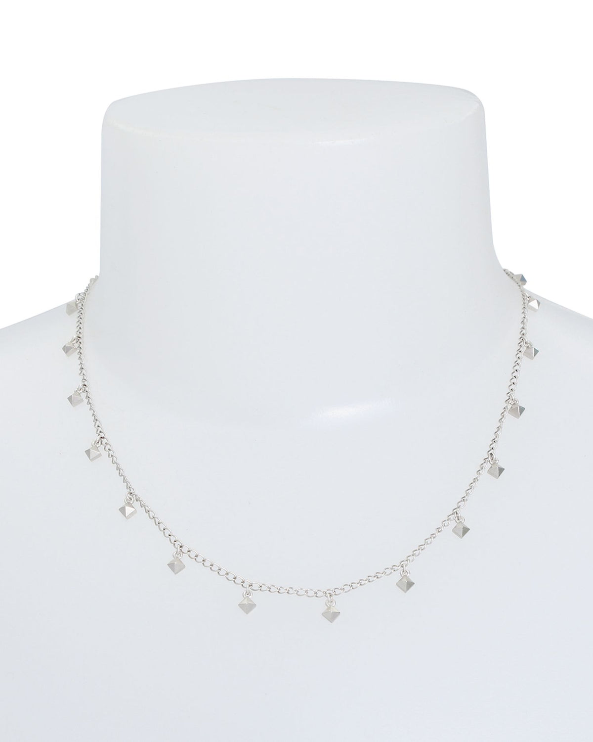 Designed in sterling silver. Necklace measures 17"L with 0.2"L pyramid pendants and features a carabiner clasp closure.
