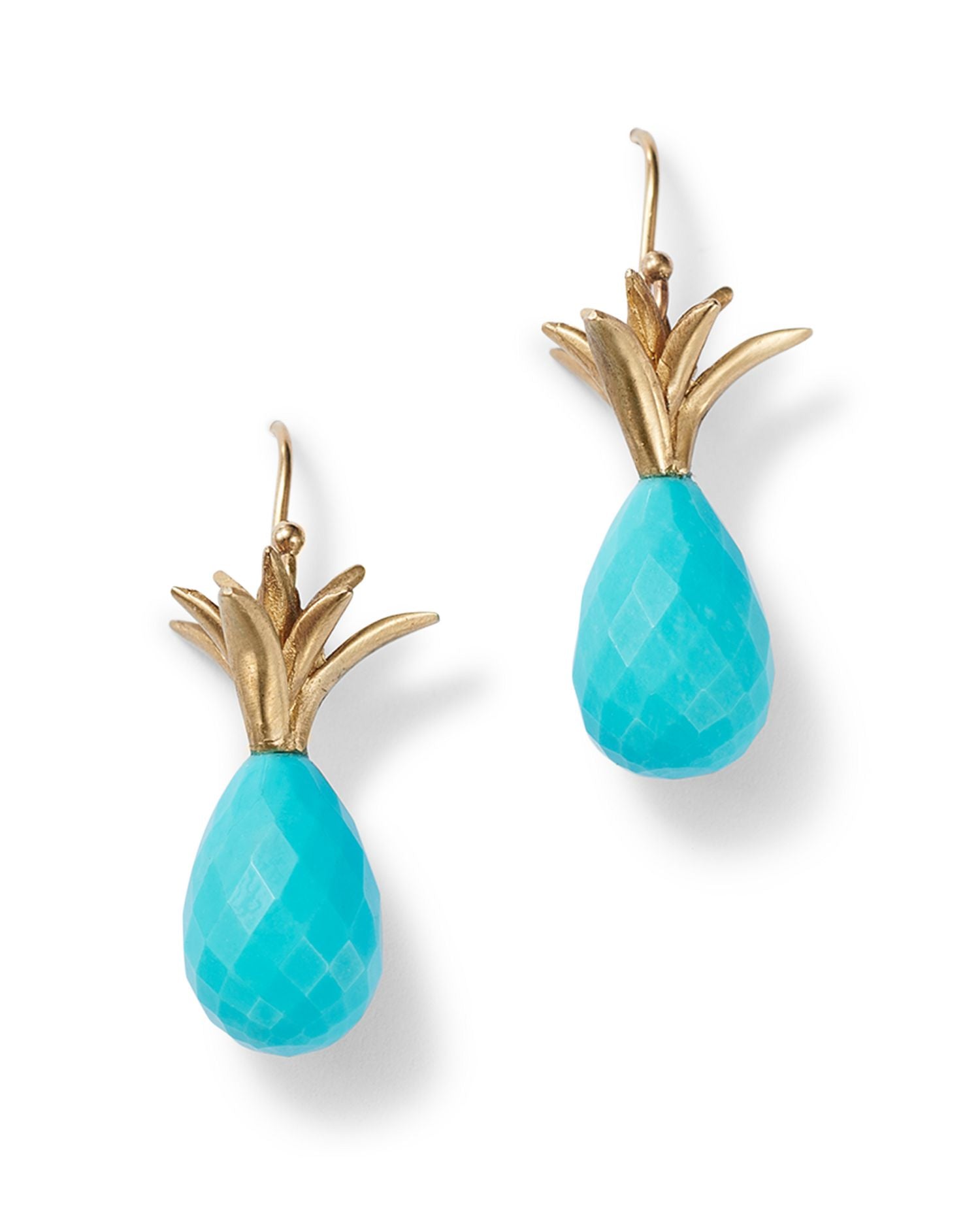 14K Yellow Gold Turquoise Pineapple Drop Earrings