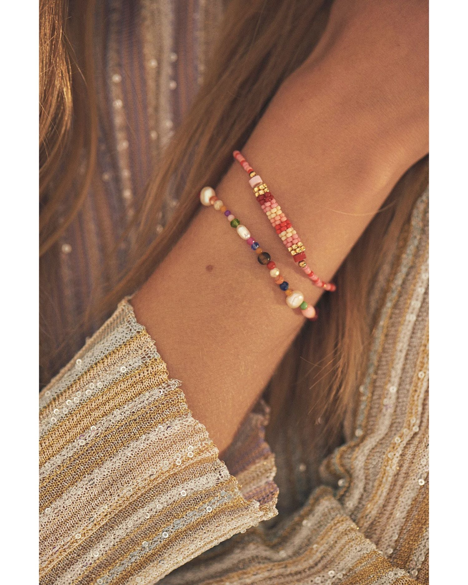 This Barrel Mixed Bead Bracelet by Anni Lu, from the Barrel collection, combines colorful beads with a polished gold-plated finish. Its vibrant design and adjustable length make it a versatile accessory for casual styling.