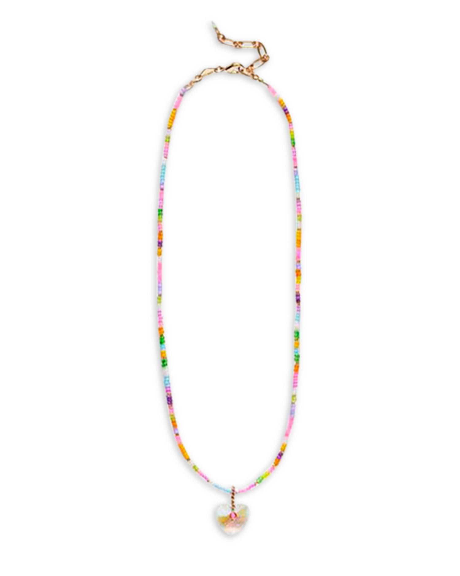This Hearty Eldorado Imitation Opal Heart Multicolor Beaded Pendant Necklace by Anni Lu, from the Hearty Eldorado collection, features a playful heart-shaped pendant with multicolor beads and opalescent accents. Perfect for adding a pop of color to your look.