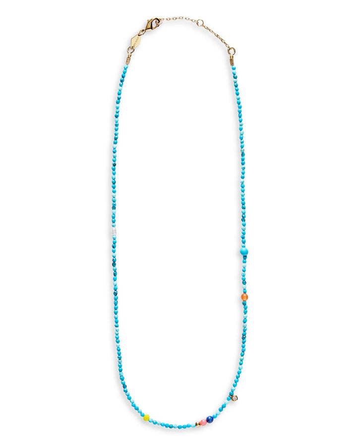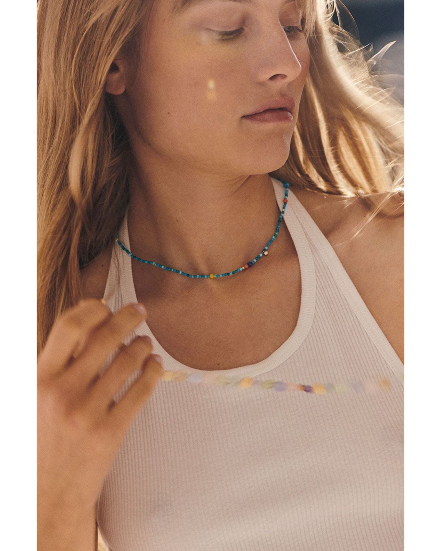 This Dotty Multi Gemstone Beaded Necklace by Anni Lu, from the Dotty collection, brings together an eclectic mix of gemstones and pearls for a vibrant, playful design. Its adjustable length ensures versatility for both casual and elevated styling.