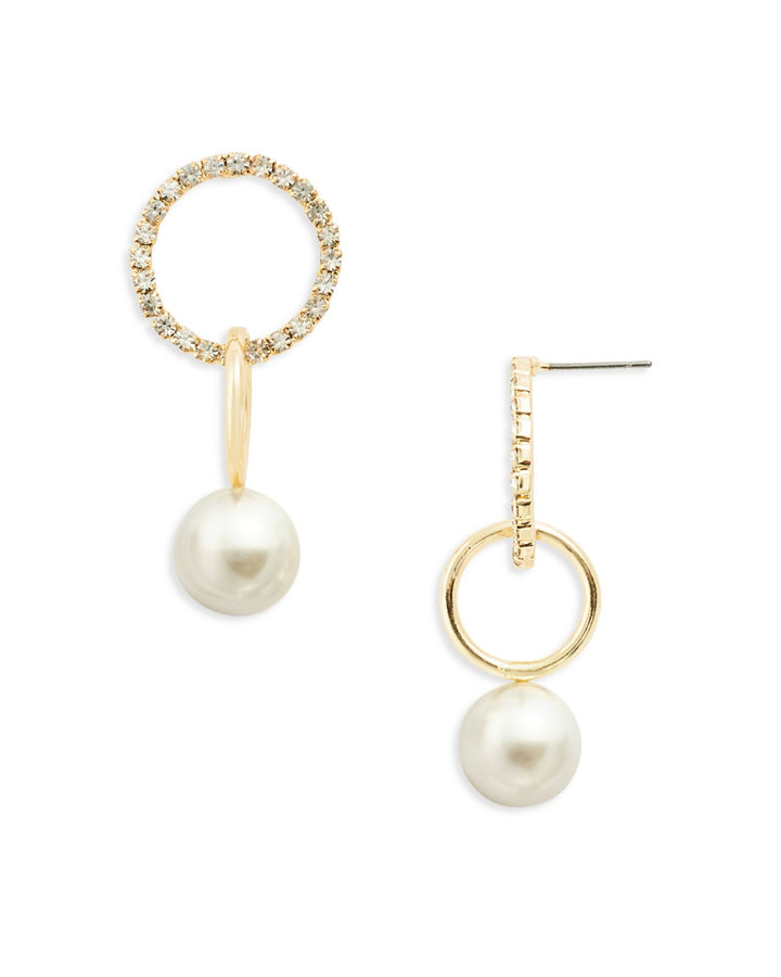 Crystal & Imitation Pearl Drop Earrings, 0.8'L - Exclusive