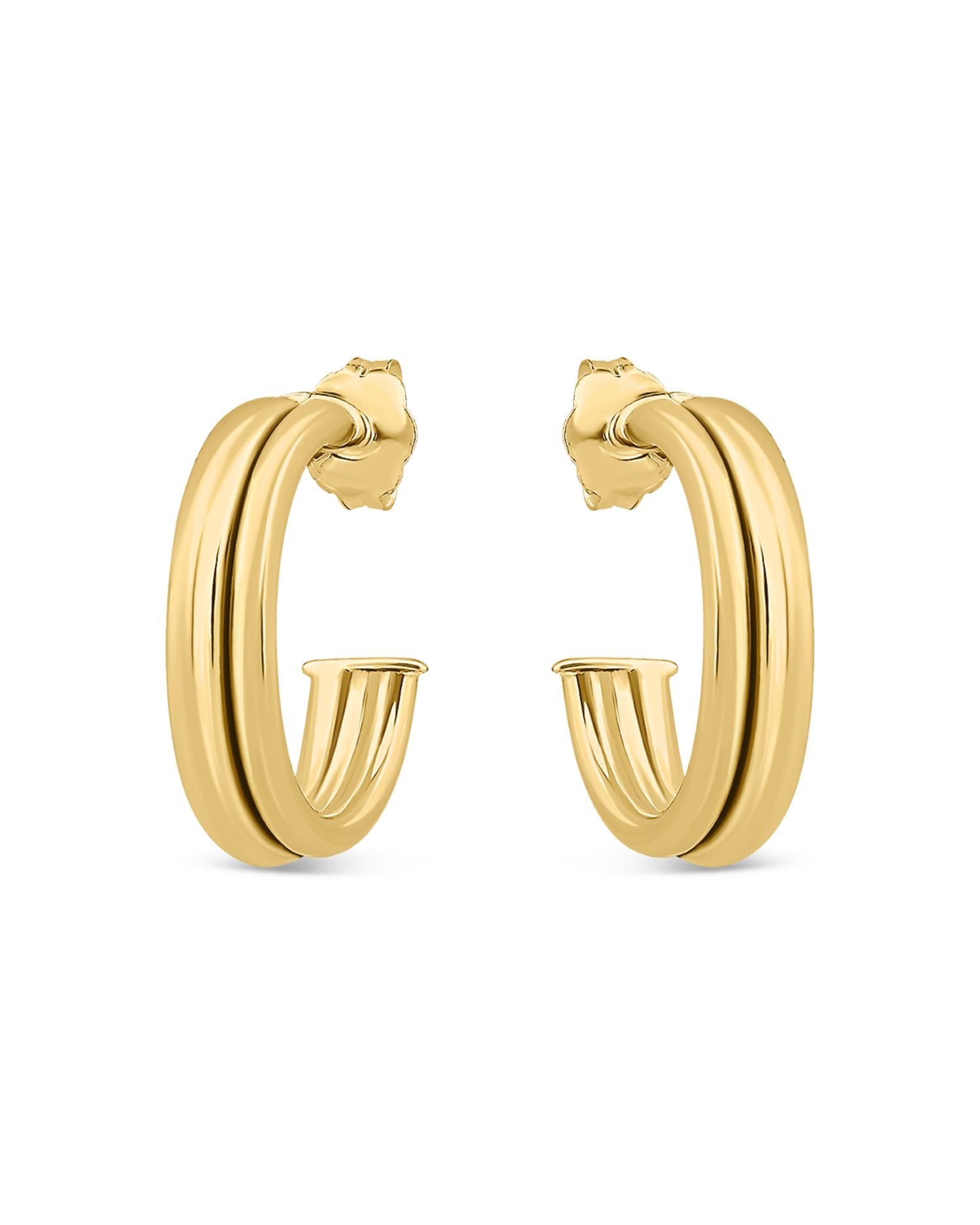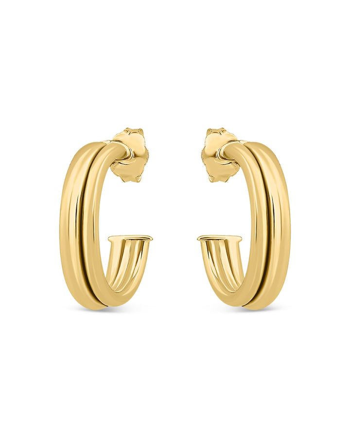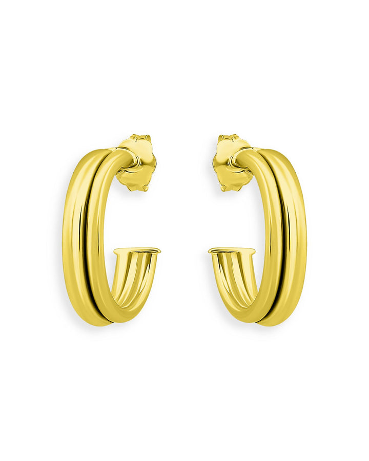 Double Row C Hoop Earrings in 18K Gold Plated Sterling Silver- Exclusive