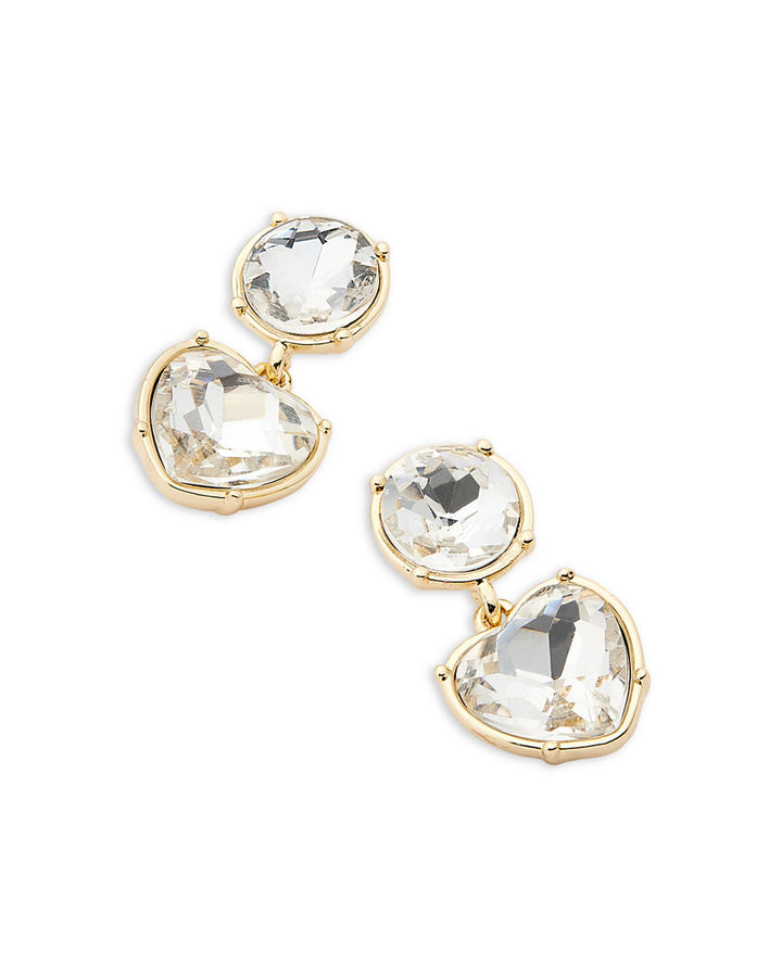 These Small Heart Drop Earrings by AQUA offer a playful yet elegant design. The 14K gold-plated brass, paired with delicate glass, creates a charming look that adds a touch of romance to any outfit. These earrings are perfect for everyday wear or as a thoughtful gift for someone special.