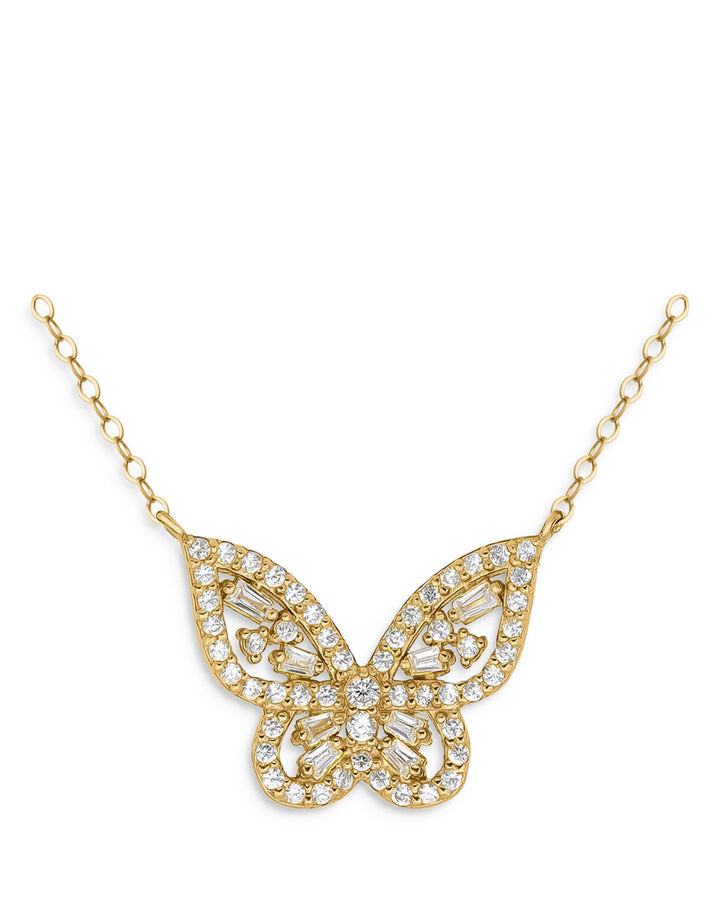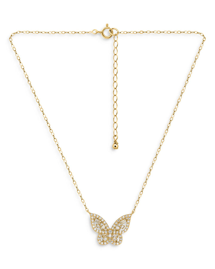 Cubic Zirconia Butterfly Pendant Necklace in 18K Gold Plated Sterling Silver, 16'-18' - Exclusive