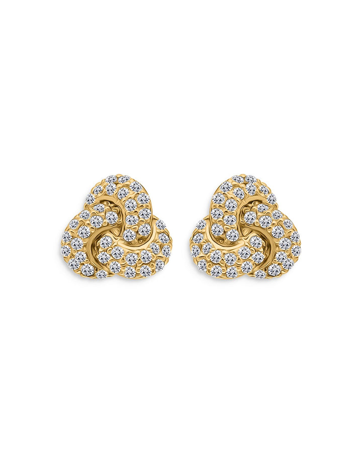 These Pavé Love Knot Stud Earrings by AQUA are a perfect representation of timeless love and commitment. The pavé cubic zirconia stones set in silver-tone or gold-tone sterling silver create a sparkling effect, while the love knot design symbolizes eternal bonds. These earrings are ideal for adding a subtle yet elegant touch to your jewelry collection.