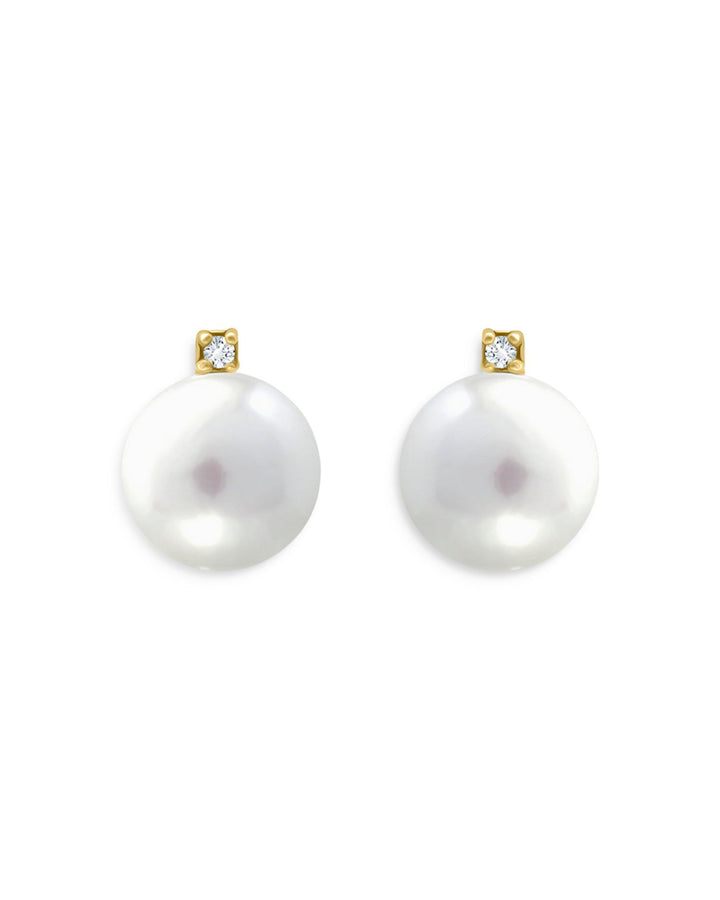 Made with cultured freshwater pearls (8mm), sterling silver or gold-plated sterling silver, and cubic zirconia. The earrings measure 3.75' in length and feature post back closures for secure wear. Almost all gemstones and blue and black diamonds have been treated to enhance their beauty and require special care.
