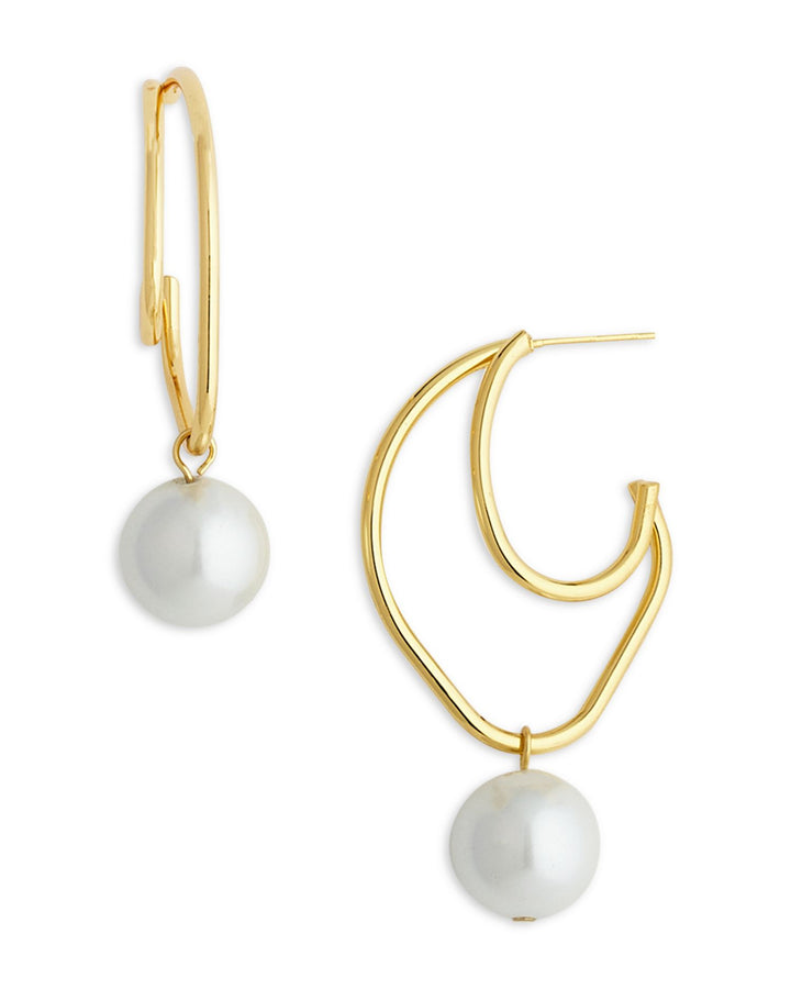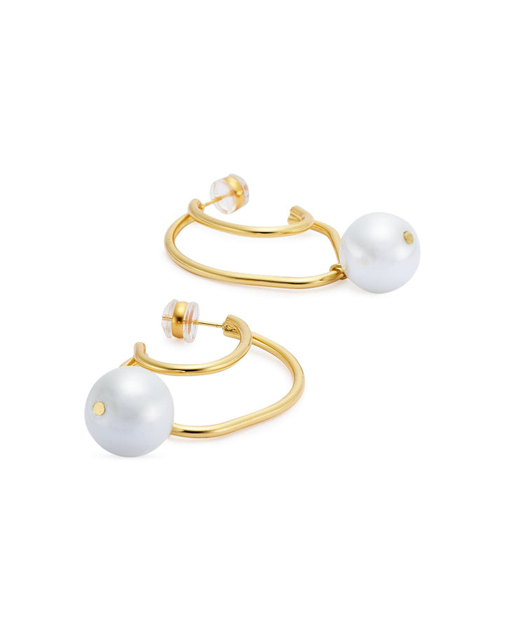 Swarovski Pearl Double Row Hoop Earrings in 14K Gold Plated - Exclusive