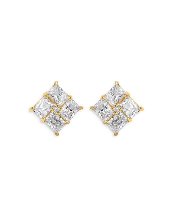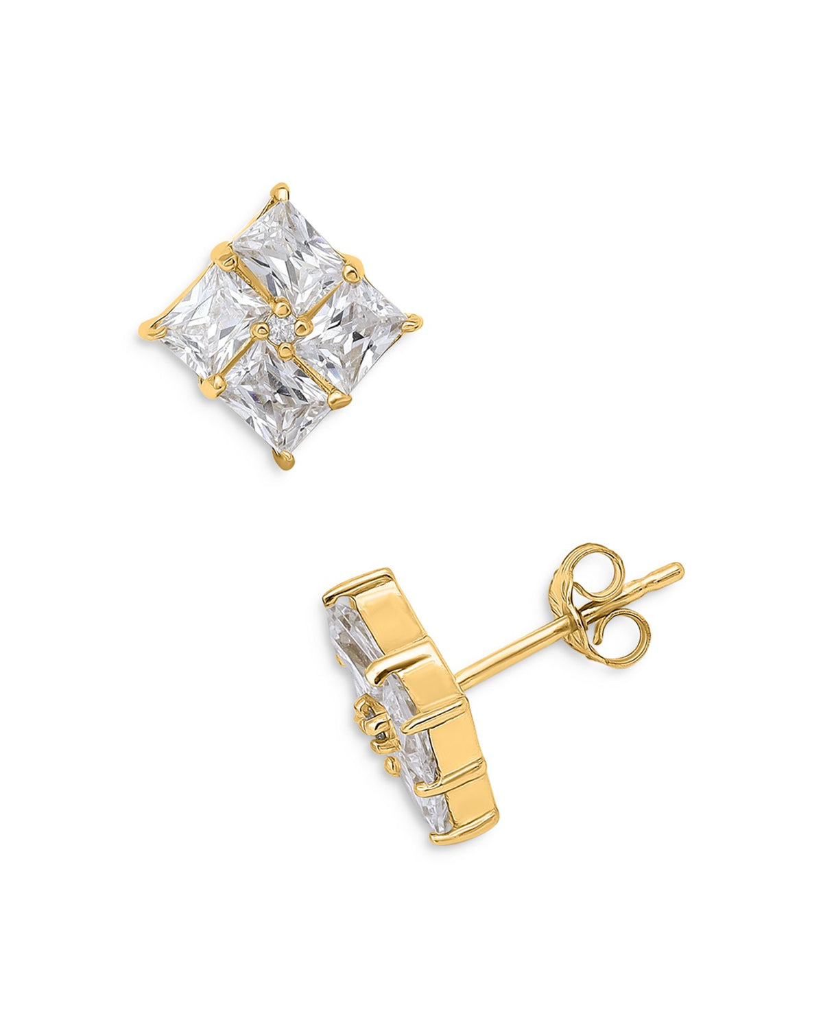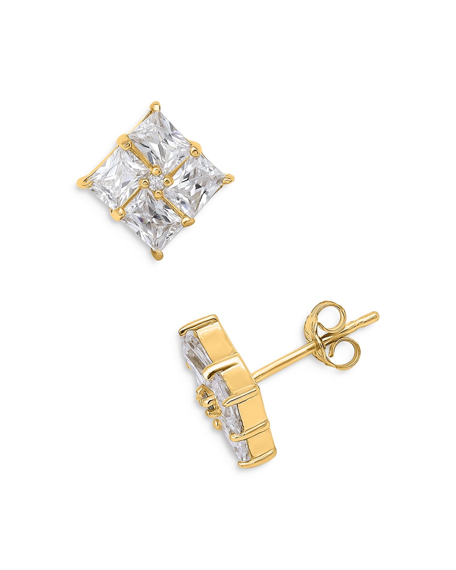 Baguette Cubic Zirconia Square Stud Earrings in 18K Gold Plated Sterling Silver - Exclusive