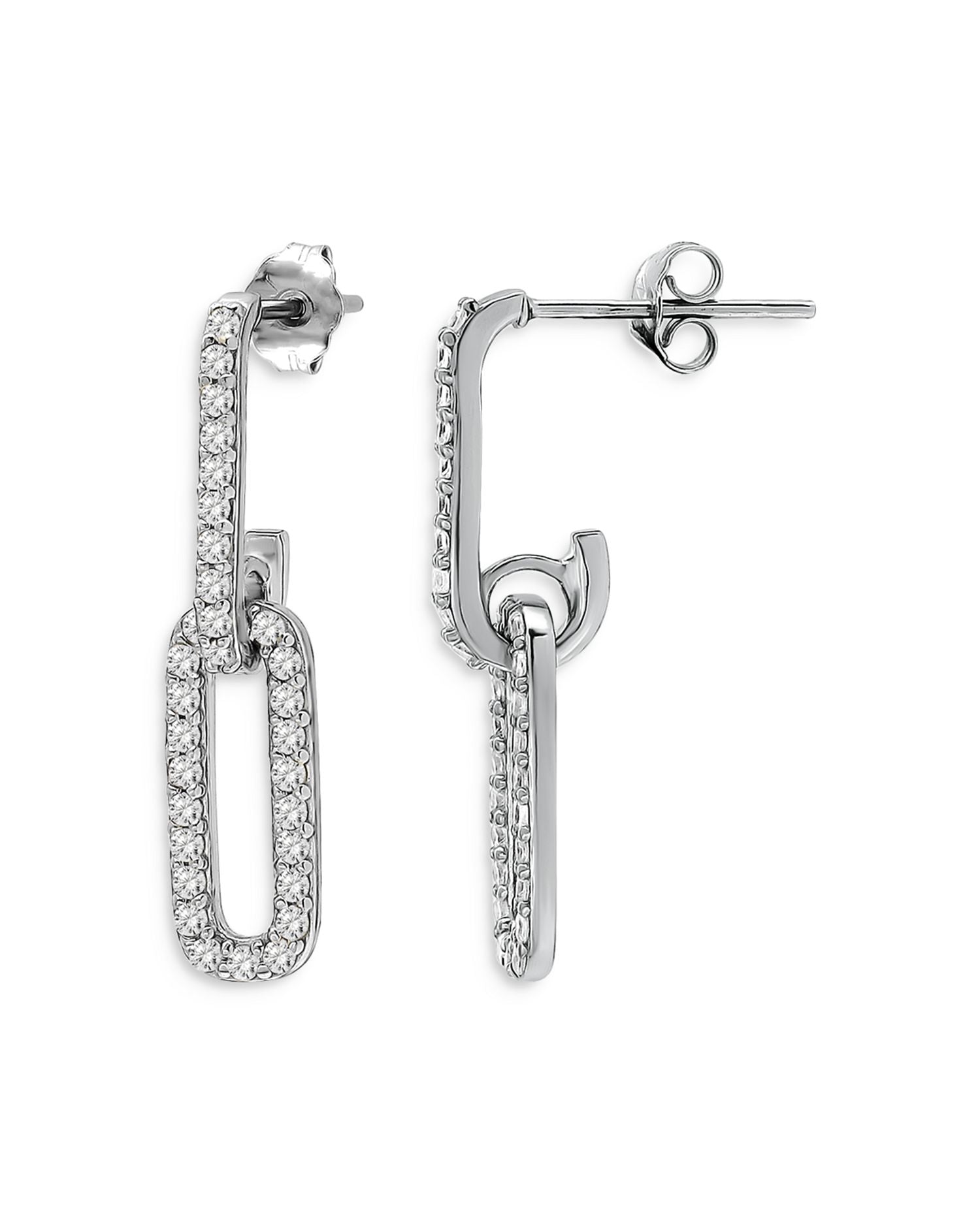 Pavé Paperclip Chain Drop Earrings in Sterling Silver - Exclusive