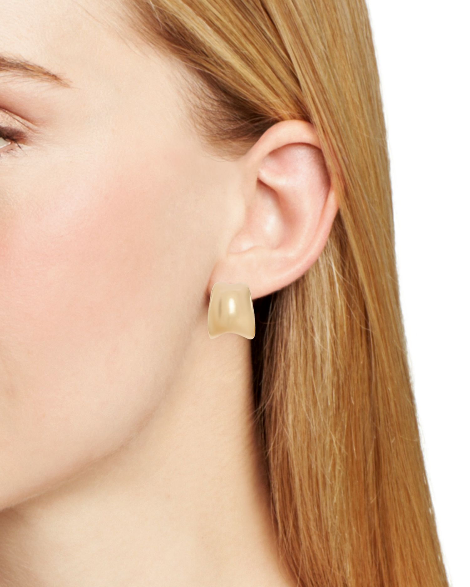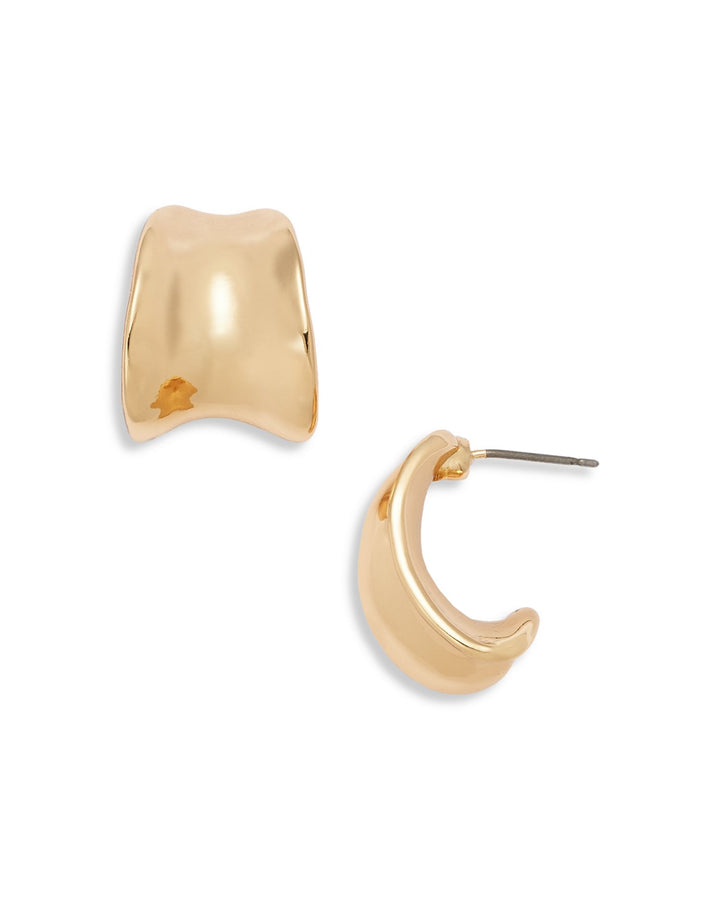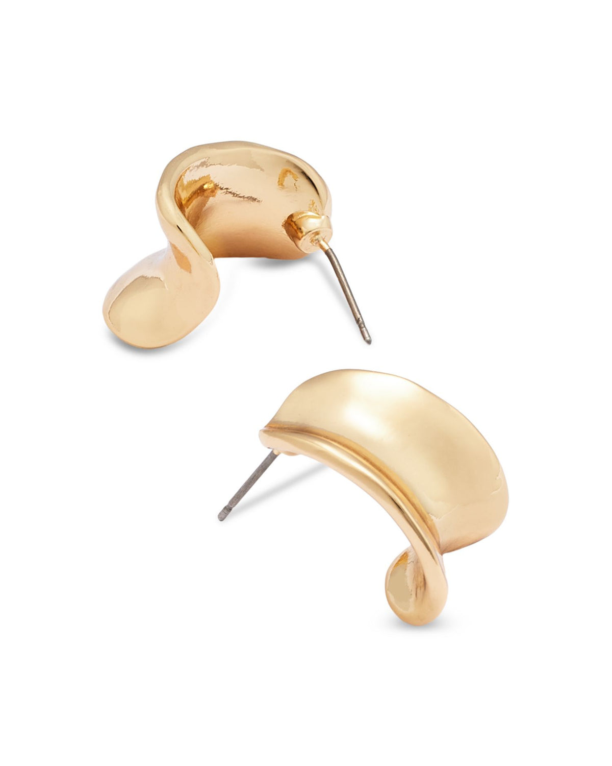These Molten Crescent Hoop Earrings by AQUA feature a sleek and modern design with a molten texture that creates depth and interest. The gold-tone finish adds a warm, elegant touch, making these hoops perfect for both casual and formal wear. Their 0.78' length provides a sophisticated, understated statement.