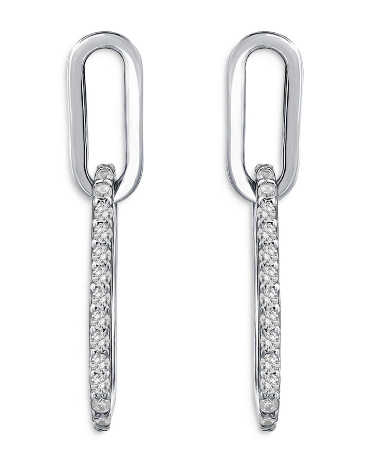 Made with sterling silver and cubic zirconia, these earrings measure 1' in length and feature post back closures for secure wear.
