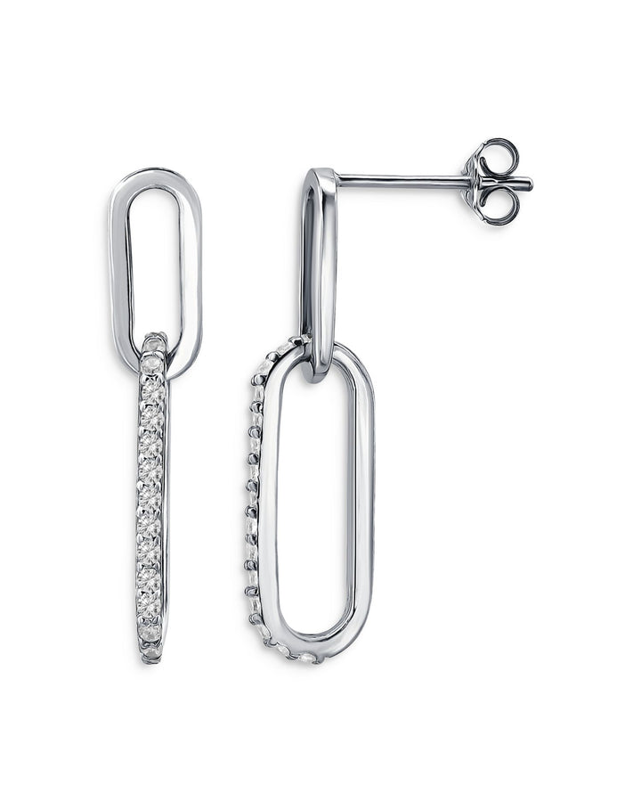 These Paperclip Drop Earrings by AQUA offer a contemporary design with a sleek, minimalist look. The sterling silver setting is adorned with cubic zirconia, adding just the right amount of sparkle. At 1' in length, these drop earrings are ideal for elevating everyday wear or adding a subtle touch of elegance to evening looks.