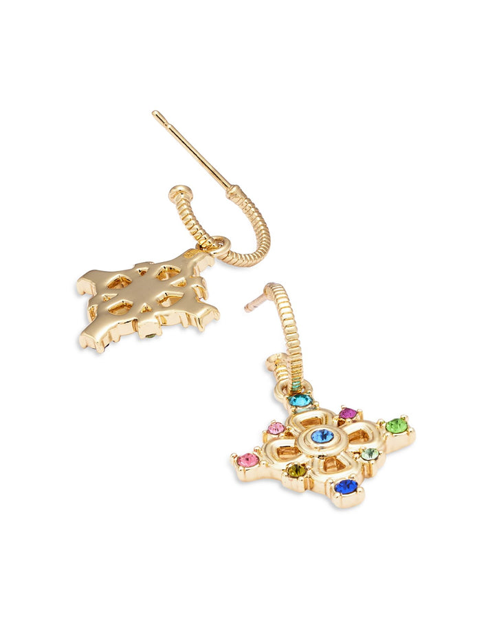 Multicolor Crystal Italy Cross Charm Hoop Earrings in 14K Gold Plated - Exclusive