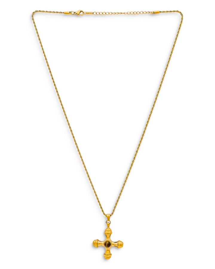 This Cross Pendant Necklace, 19' by AQUA offers a simple yet meaningful design. The 18K gold-plated stainless steel cross pendant is complemented by colored glass, creating a bold yet refined look. The 19' length with a 3' extension ensures a customizable fit, making this necklace perfect for both everyday wear and layering.