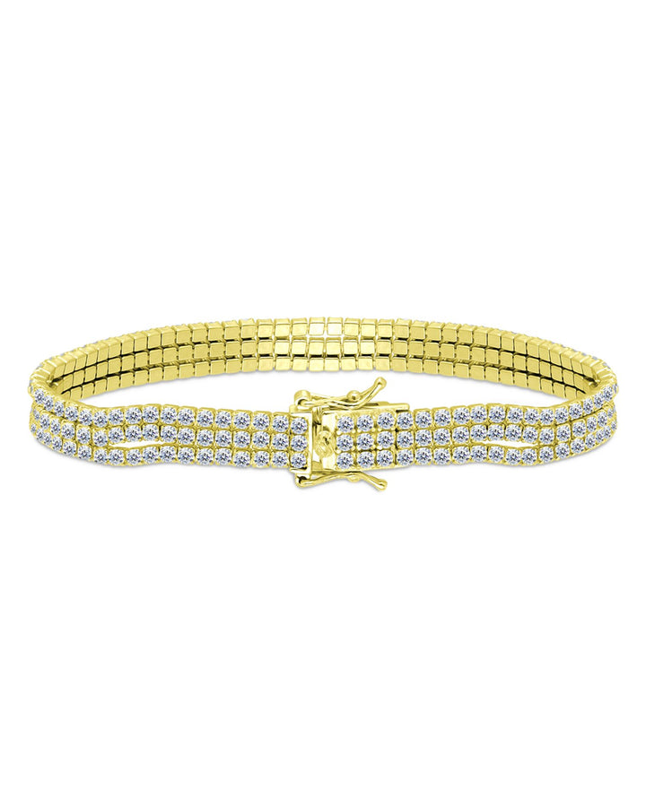 Tennis Cubic Zirconia Triple Row Flex Bracelet in Sterling Silver or 18K Gold Over Sterling Silver - Exclusive