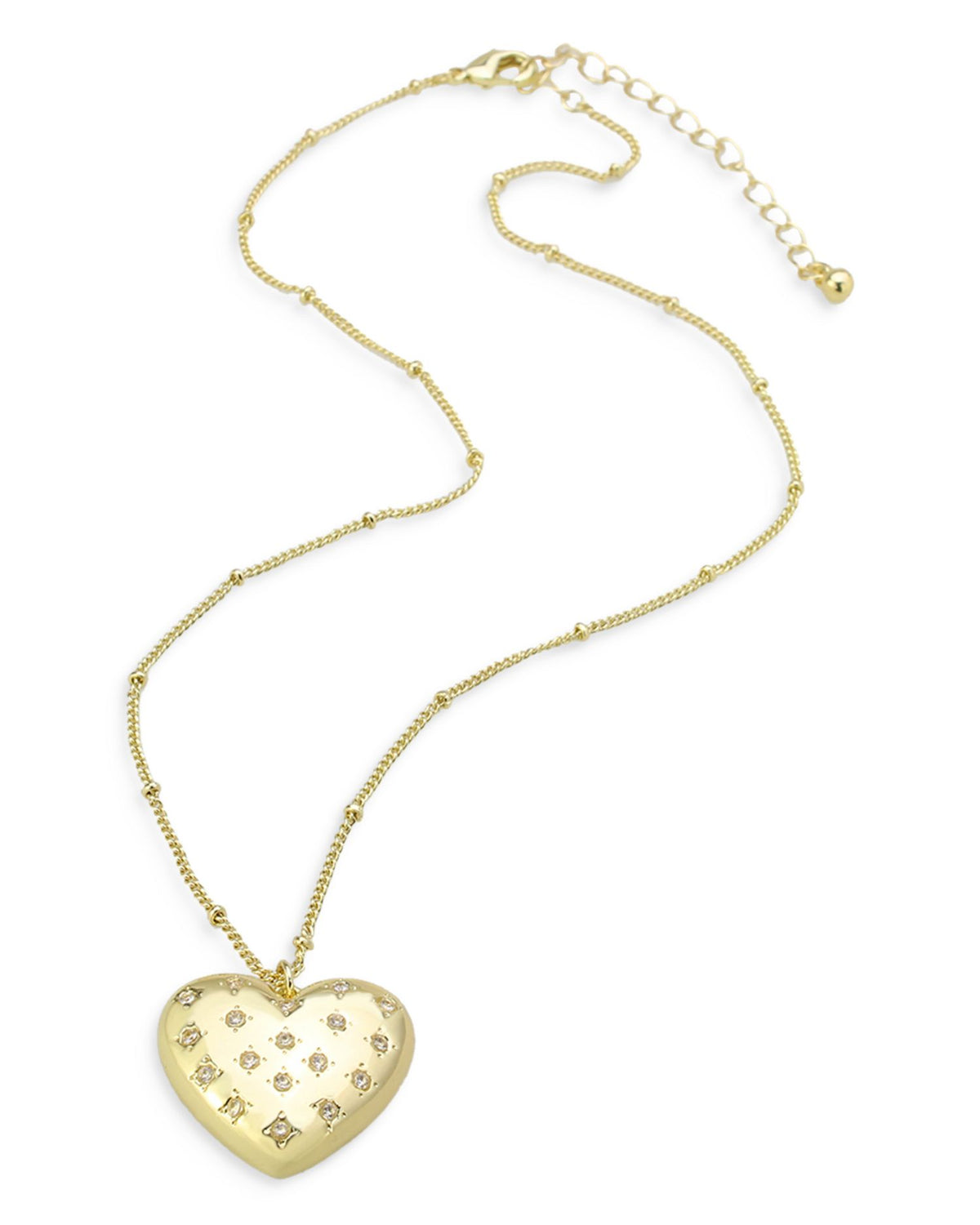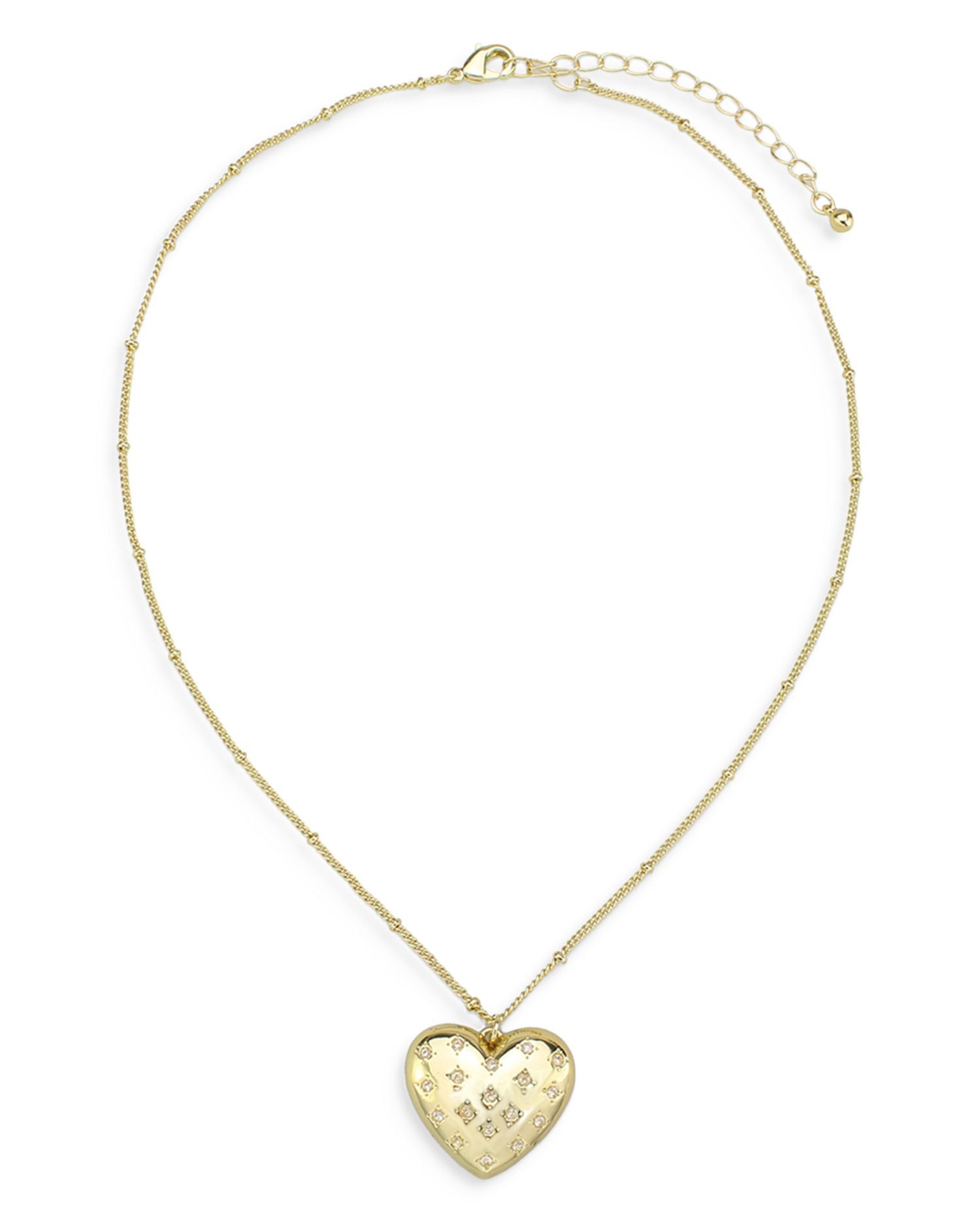 This Pavé Puffed Heart Pendant Necklace, 16' by AQUA offers a romantic and sparkling design. The gold-tone heart pendant is adorned with cubic zirconia, creating a luxurious, sparkling effect. The 16'L chain with a 3' extender ensures a customizable fit, making this necklace perfect for adding a delicate yet glamorous touch to any outfit.