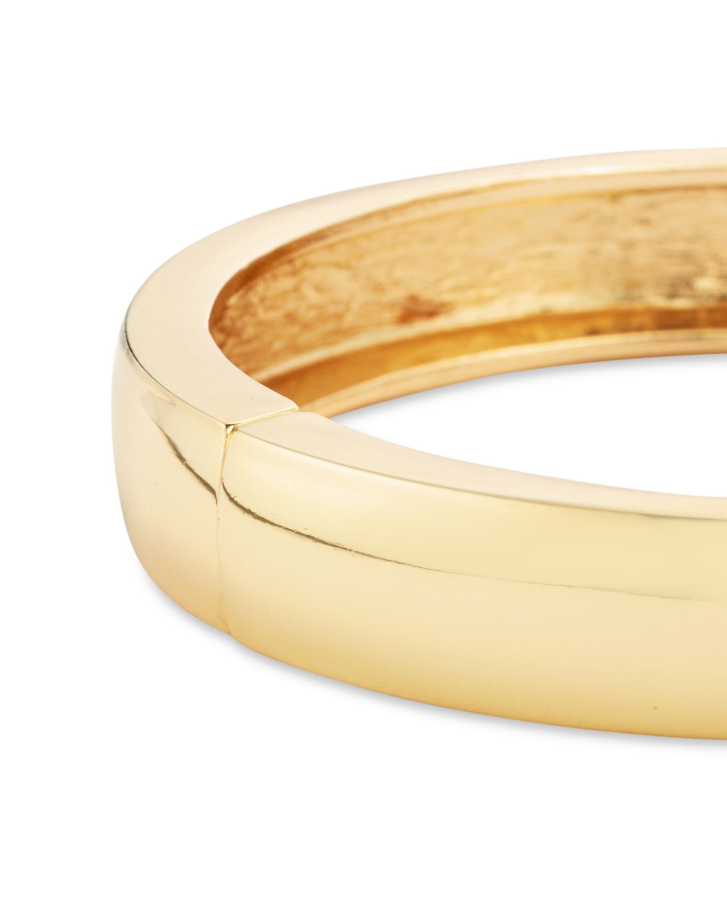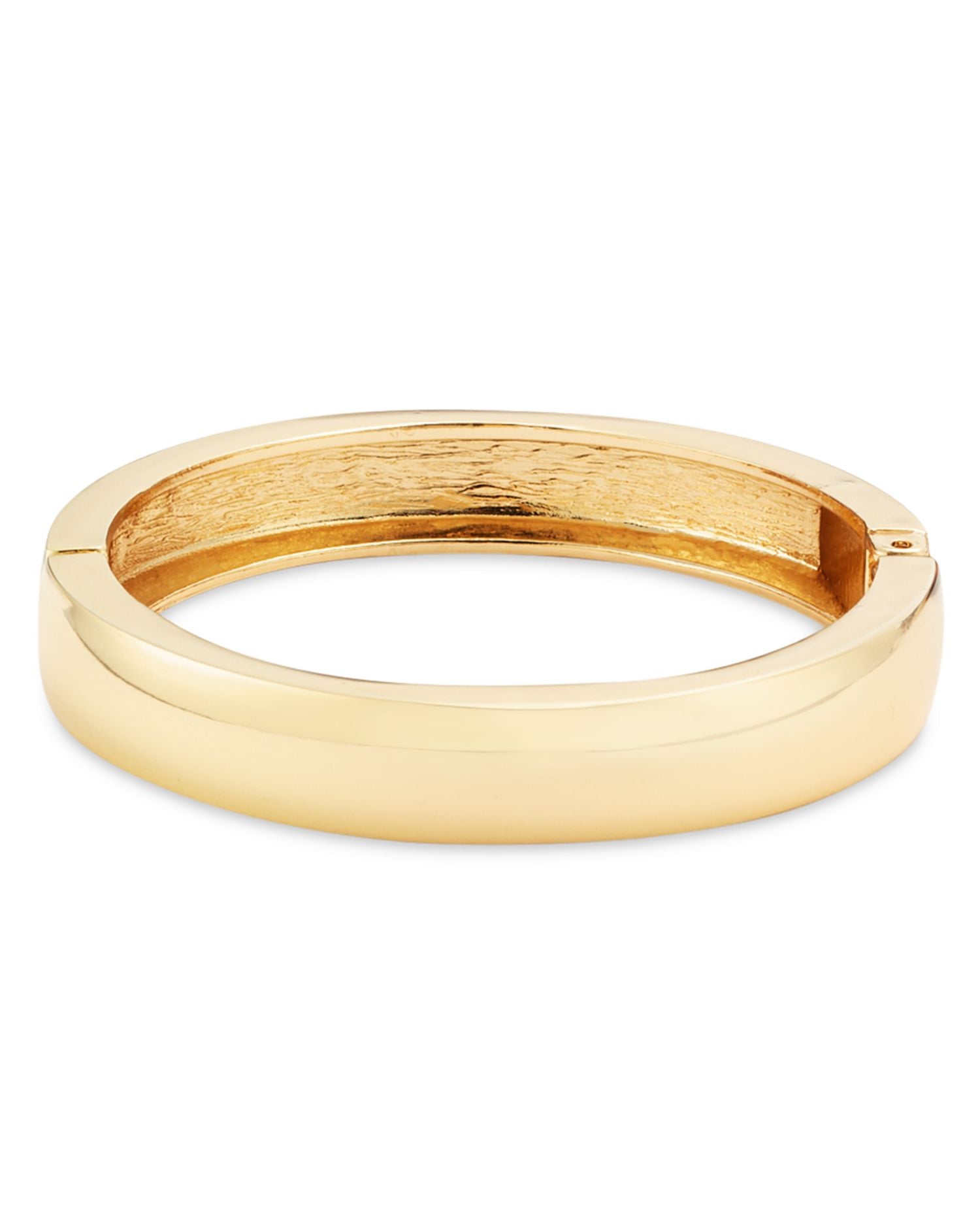 Made with gold-tone plating and zinc alloy, this bangle bracelet has a 2.36' diameter and features a hinge closure.