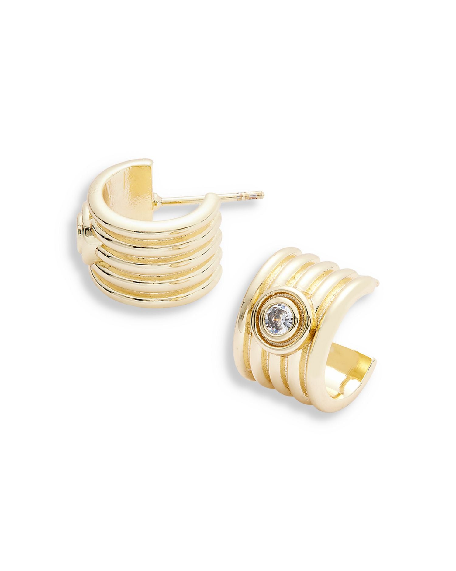 Cubic Zirconia Ribbed Huggie Hoop Earrings - Exclusive