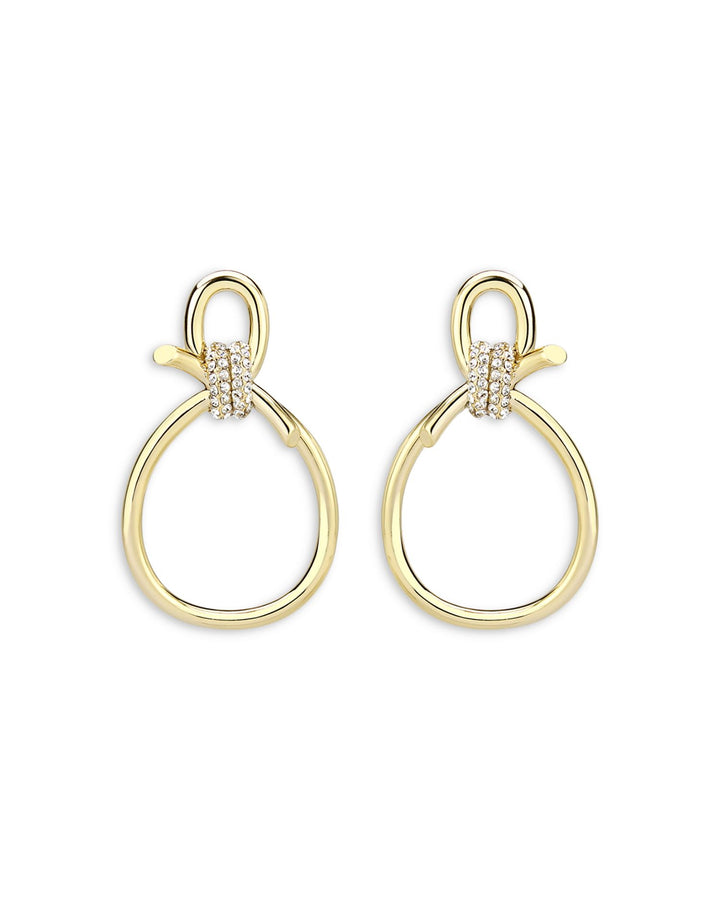 These Pavé Knotted Drop Earrings by AQUA offer a refined and elegant design. The gold-tone metal is adorned with glass and cubic zirconia, creating a sparkling effect. At 1.97'L, these earrings provide a chic, elongated drop, making them perfect for adding glamour and sophistication to any ensemble.