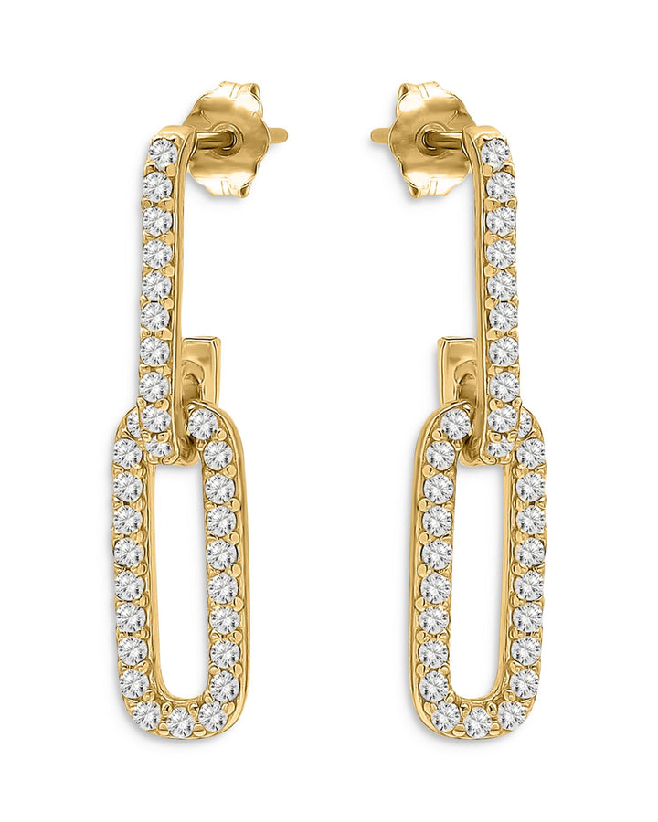 Made with 18K gold-plated sterling silver and cubic zirconia, these earrings measure 1.125' in length and feature post back closures.