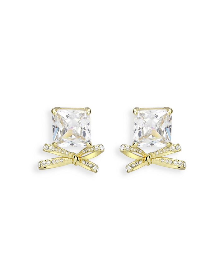 Pavé & Square Crystal Bow Stud Earrings - Exclusive