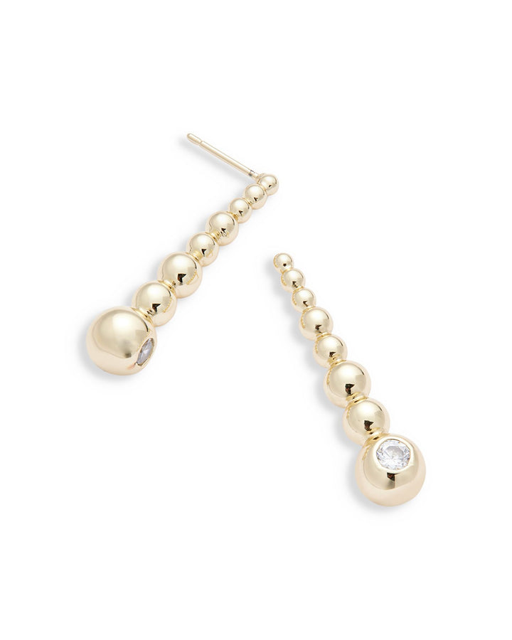 These Cubic Zirconia Graduated Ball Drop Earrings by AQUA offer a chic and elegant design. The 14K gold-plated brass setting is adorned with graduated cubic zirconia, creating a dazzling effect. At 1.3'L, these drop earrings provide a graceful yet eye-catching look, perfect for adding sophistication to any outfit. The post back closure ensures secure wear.