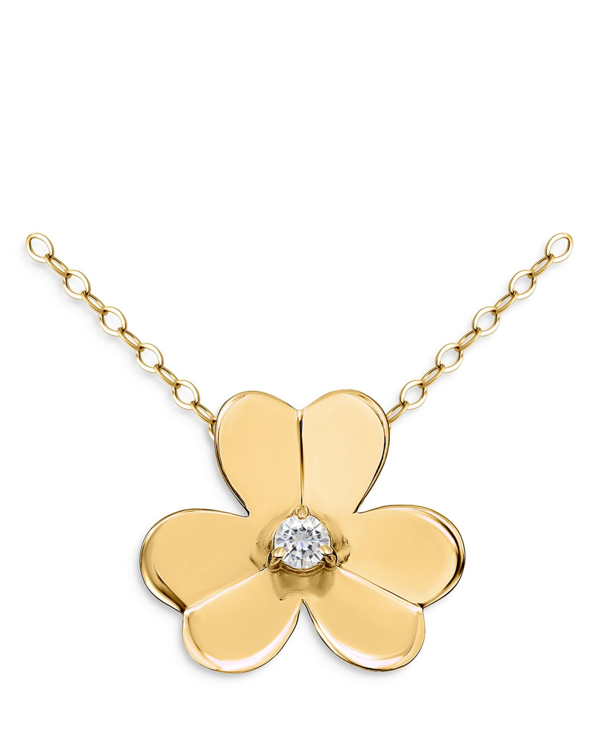 Cubic Zirconia Flower Pendant Necklace in 18K Gold Plated Sterling Silver, 16'-18' - Exclusive