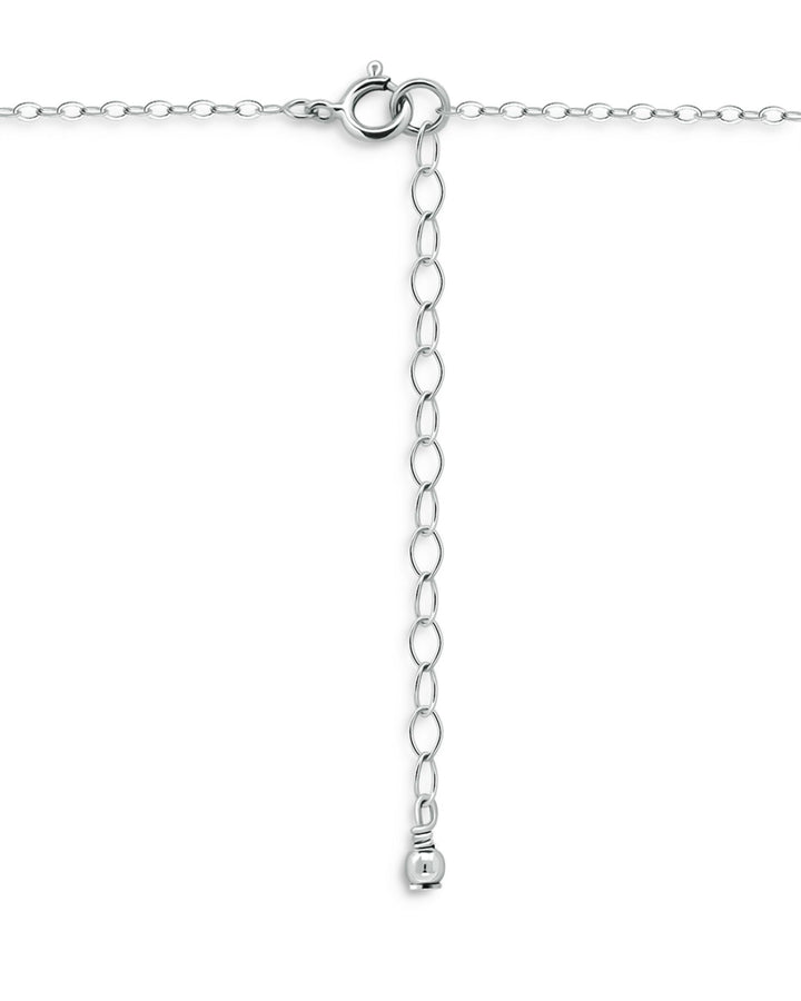 Made with sterling silver and cubic zirconia. The necklace has a 16'L length with a 2' extender, and the pendant measures 0.75'L. Spring ring closure.