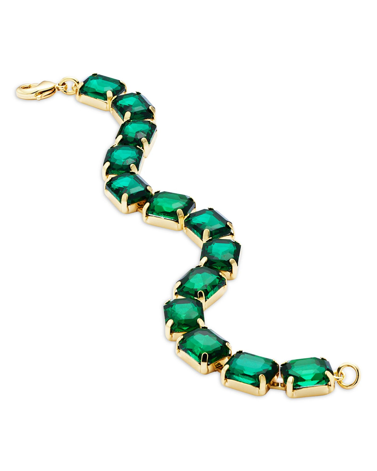 Made with 14K gold-plated sterling silver and green glass stones. The bracelet has a 7'L length and features a lobster clasp closure. Part of the Wicked holiday collection.
